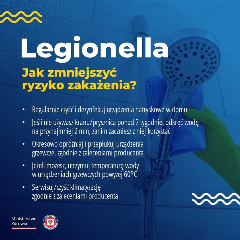 W związku z zakażeniami bakterią Legionella Główny Inspektor Sanitarny polecił wszystkim jednostkom Państwowej Inspekcji Sanitarnej w kraju wzmocnienie nadzoru nad przestrzeganiem zasad bezpieczeństwa zdrowotnego wody przez zarządzających wodociągami i instalacjami wodnymi.