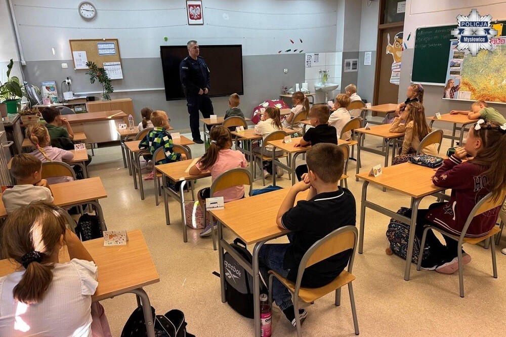 Wczoraj uczniowie pierwszych klas ze Szkół Podstawowych nr 3 i 4 w Mysłowicach mieli okazję spotkać się z dzielnicowym z Janowa. Tematem spotkania było bezpieczeństwo dzieci w ruchu drogowym w ramach akcji „Bezpieczna droga do szkoły”. Mundurowy przekazał dzieciom cenne wskazówki dotyczące bezpiecznego poruszania się po drodze.