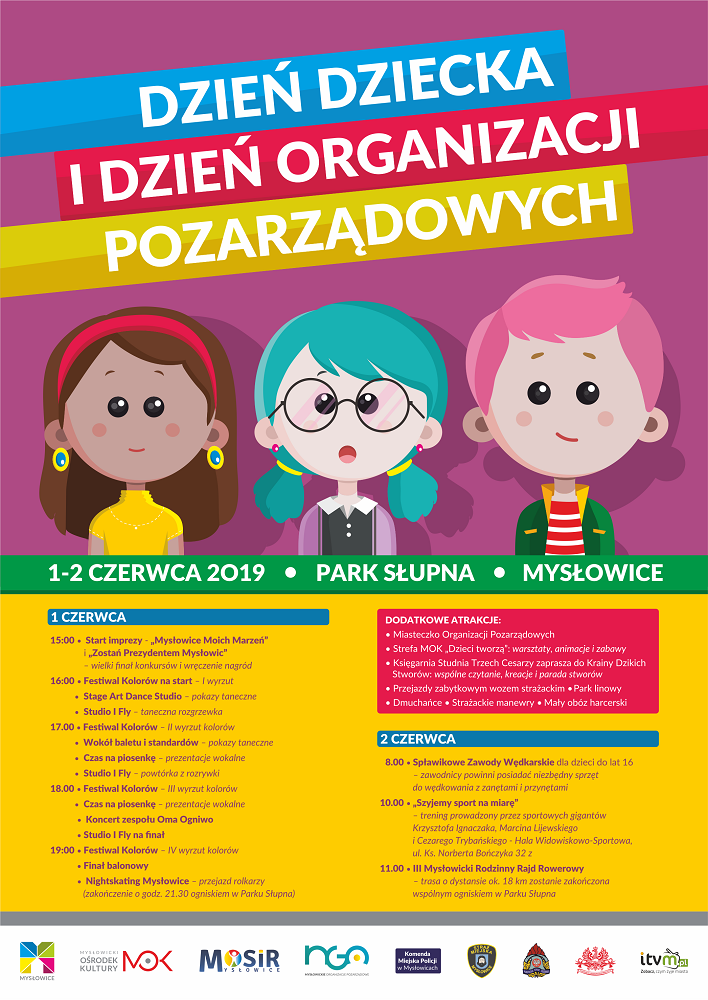 Dzień Dziecka w Parku Słupna rozpocznie się w sobotę 1 czerwca o godzinie 15.00 wielkim finałem konkursów "Mysłowice Moich Marzeń" oraz "Zostań Prezydentem Mysłowic". Kolejną przygotowaną atrakcją będzie Festiwal Kolorów, w ramach którego odbędą się cztery wyrzuty kolorów, kolejno o godzinie 16.00, 17.00, 18.00 i 19.00.