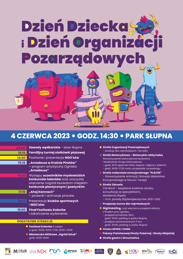 W mysłowickim Parku Słupna 4 czerwca br. odbędzie się Dzień Dziecka połączony z Dniem Organizacji Pozarządowych. Start godz. 14.30. Nie zabraknie atrakcji dla najmłodszych oraz jak co roku rozkwitnie miasteczko mysłowickich organizacji.