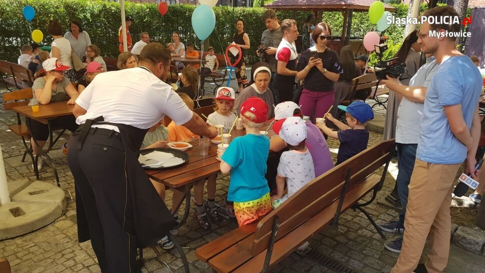 Po emocjonujących przeżyciach na dzieci czekała kolejna niespodzianka. Ich kulinarne życzenia spełniali m.in. właściciele lokalnych firm, posłowie, przedstawiciele władz miasta oraz komendanci policji, straży pożarnej i straży miejskiej. Pyszną zupę pomidorową serwował Komendant Miejski Policji w Mysłowicach nadkom. Dariusz Koniak.