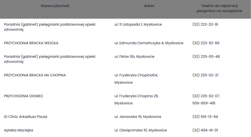 oraz na podstawie wystawionej recepty i w zależności od szczepionki) m. in.:
