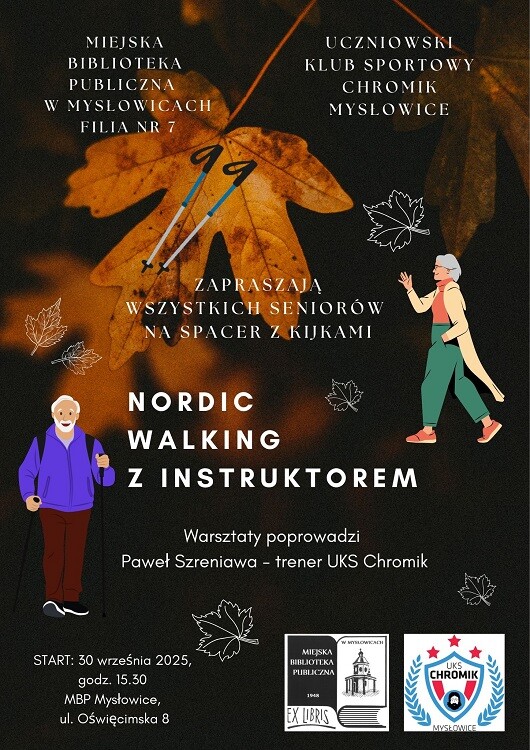 W ramach kontynuacji warsztatów, seniorzy zostali zaproszeni na warsztaty z nordic walking z instruktorem z UKS "Chromik" Mysłowice. Spotkanie odbędzie się 30 września o godzinie 15:30 w Filia nr 7 przy ulicy Oświęcimskiej 8. To doskonała okazja, aby spróbować tej formy aktywności fizycznej pod okiem doświadczonego trenera. Nie trzeba mieć doświadczenia, instruktor pomoże każdemu!