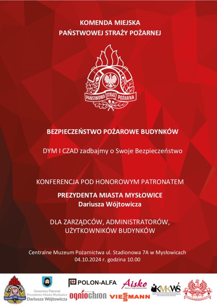 Konferencja została objęta Honorowym Patronatem Prezydenta Miasta Mysłowice, Dariusza Wójtowicza, co podkreśla wagę problematyki bezpieczeństwa pożarowego w regionie.