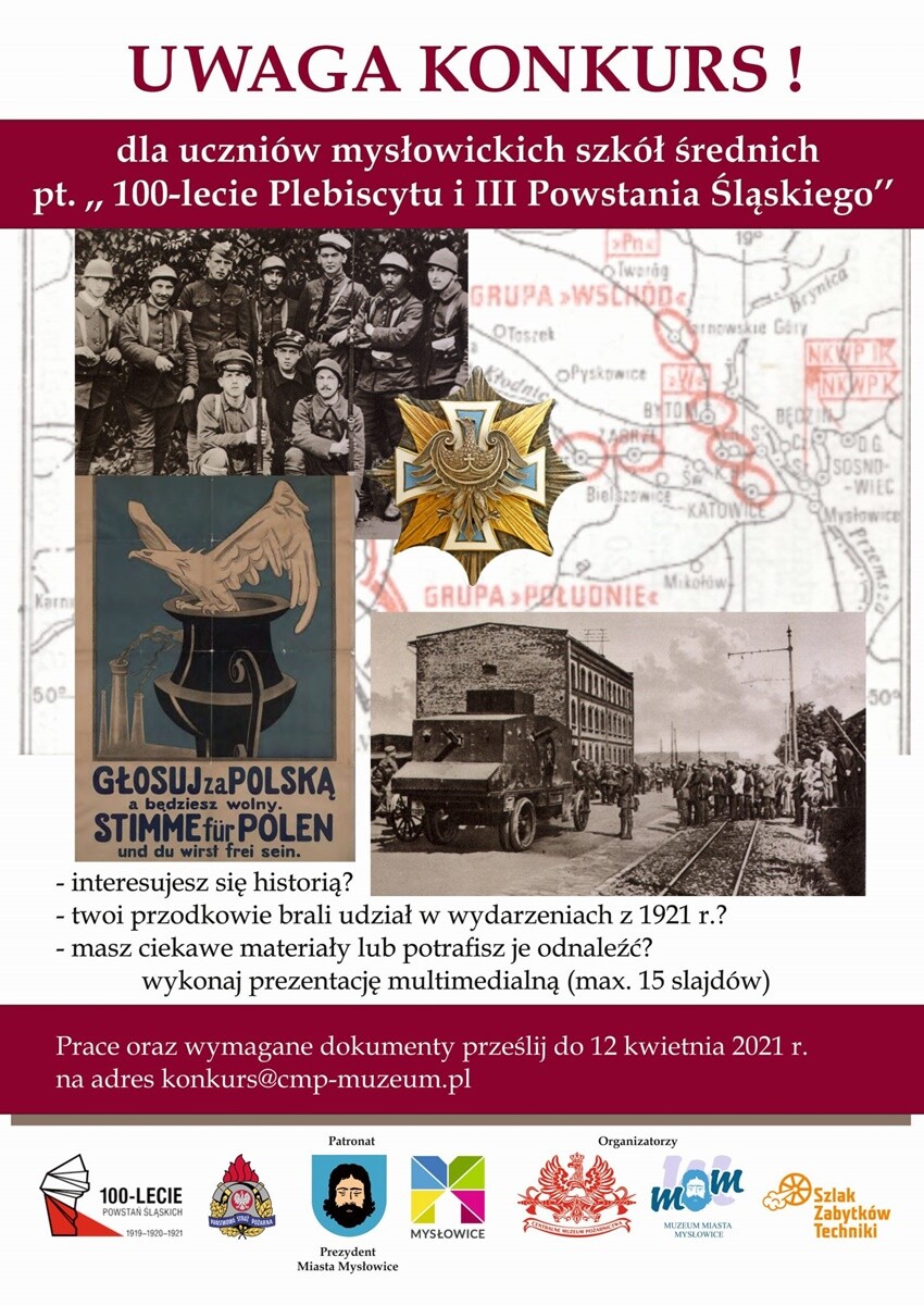 Urząd Miasta Mysłowice, Centralne Muzeum Pożarnictwa i Muzeum Miasta Mysłowice zaprasza wszystkich uczniów mysłowickich szkół średnich zainteresowanych historią Śląska do udziału w konkursie multimedialnym.