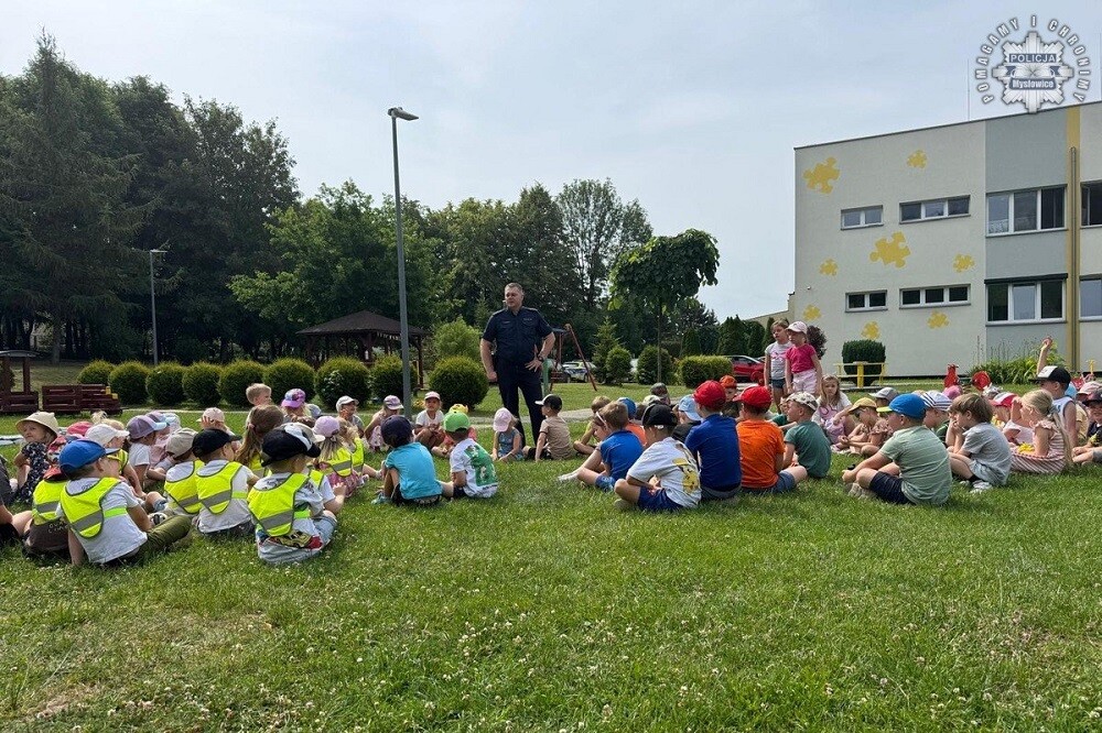 W ubiegły poniedziałek mundurowy z dzielnicy Janów spotkał się z najmłodszymi mieszkańcami Mysłowic, by porozmawiać o tym, jak bezpiecznie spędzić letnie dni – zarówno w mieście, jak i nad wodą czy w górach.