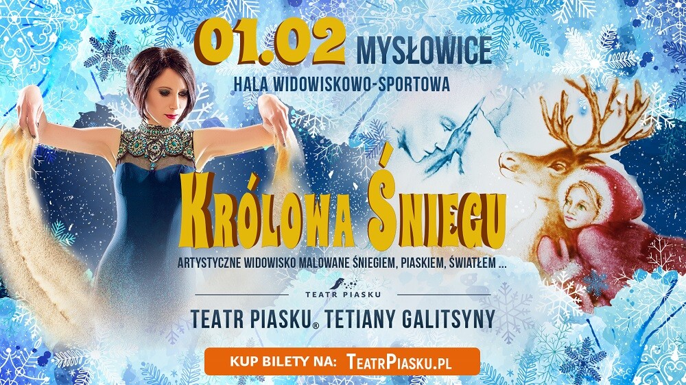Już 1 lutego w Hali Widowiskowo - Sportowej w Mysłowicach będą państwo mogli zobaczyć piękną, magiczną opowieść o Królowej Śniegu, opowiedzianą różnymi, niespotykanymi technikami artystycznymi.