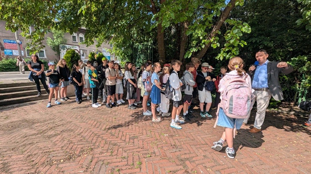 Uczniowie poznali również dziedzictwo innych kultur obecnych w Mysłowicach – Żydów i ewangelików, a także historię emigracji zamorskiej. Duże zainteresowanie wzbudziły opowieści o lokalnych klubach sportowych oraz nietypowa bliskość walcowni blachy i ratusza, będąca przykładem współistnienia przemysłu i instytucji miejskich.