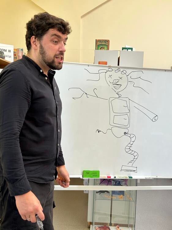 Zajęcia poprowadził Mateusz Świstak – znany jako Gadający Świstak / Baśnie na warsztacie: opowiadacz, pisarz, edukator i podcaster, od lat współpracujący z Instytutem Książki w kampanii „Mała książka – wielki człowiek”.