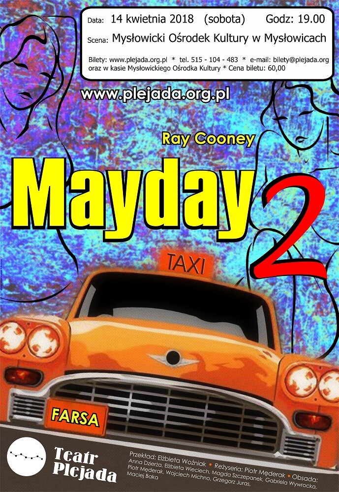 „Mayday 2” to spektakl prezentujący w zabawny sposób perypetie londyńskiego taksówkarza, Johna Smitha, który stara się ocalić przed wyjawieniem kłamstwa, w jakim udaje mu się trwać przez lata – związek z dwiema kobietami. Niestety jedna sytuacja powoduje wiele komplikacji i zbiegów okoliczności, które mogą doprowadzić do odkrycia przez kobiety tej skrzętnie ukrywanej tajemnicy. Bigamista, pragnąc ratować obydwa małżeństwa, doprowadza swoje dzieci, żony i przyjaciela na skraj nerwowej wytrzymałości. Wszystko to kończy się również wyczerpaniem sił psychofizycznych winowajcy. Co wyniknie z tej trudnej, choć pełnej dobrego humoru, historii? O tym dowiemy się już w drugą sobotę kwietnia w Mysłowickim Ośrodku Kultury przy ul. Grunwaldzkiej 7.