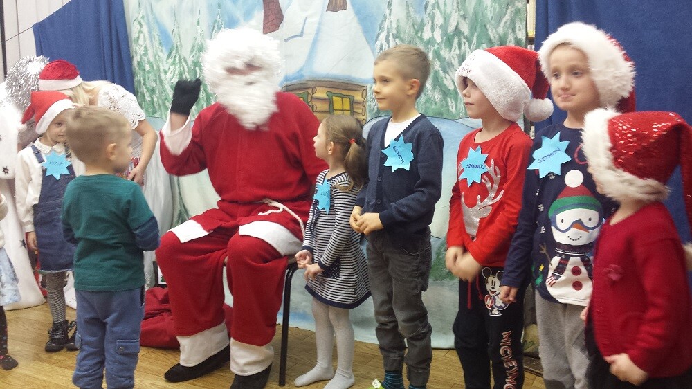 Ogromną radość sprawiło dzieciom spotkanie ze Mikołajem, przed którym prezentowały swoje umiejętności, tj. liczenie w języku angielskim, ćwiczenie pompek, recytowanie wierszyków czy śpiewanie piosenek. Najmilszą jednak chwilą dla każdego malucha było otrzymanie "mikołajowej" niespodzianki i pozowanie do pamiątkowego zdjęcia Mikołajem.