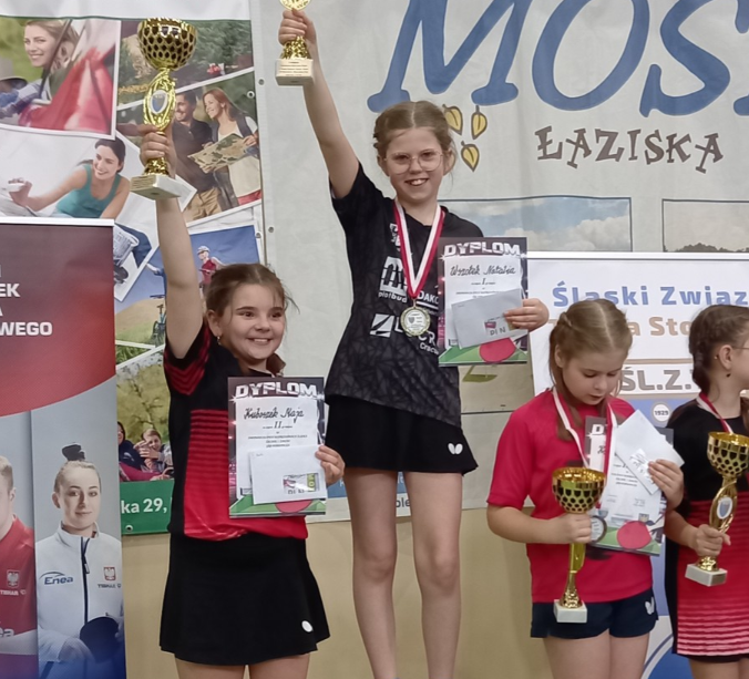 W grze podwójnej z Mają Kuboszek (RKS Cukrownik Chybie) również sięgnęła po złoto. Natalka mimo bardzo długiej przerwy po urazie nogi pokazała swoją klasę i udowodniła, że nadal dominuje wśród żaczek. Za tydzień Mistrzostwa Polski w Gliwicach.