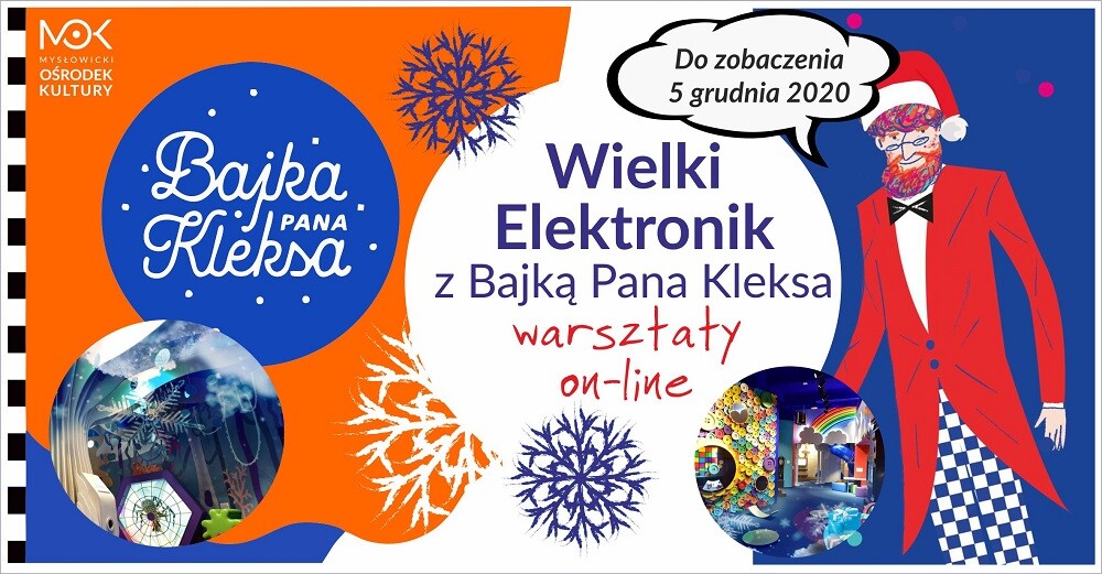 Prawdziwą gratką z pewnością będzie piernikowe szaleństwo; poznamy recepturę na masę piernikową i nauczymy się jak pięknie i klasycznie je udekorować. Dodatkowo i dla urozmaicenia instytucja korzysta ze współpracy z edukacyjną bawialnią „Bajka Pana Kleksa”, która specjalnie dla MOKu przygotowała propozycję warsztatów on-line „Wielki Elektronik”. Będą to eksperymenty chemiczne, bezpieczne do przeprowadzenia w domu, dla których inspiracją są: świąteczne pieczenie ciast, wybitny zapach pomarańczy czy np. szyszki, które często są ozdobami choinkowymi. Od początku grudnia MOK systematycznie będzie publikował kolejne propozycje na swoim fb oraz platformie e-mok.