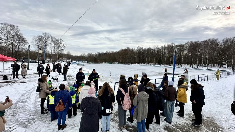 Mysłowiccy policjanci wraz ze strażakami z Komendy Miejskiej Państwowej Straży Pożarnej w Mysłowicach odwiedzili kąpielisko w Parku Słupna, gdzie przeprowadzili prelekcje związane z rozpoczynającymi się wkrótce na Śląsku feriami zimowymi. Mundurowi poruszyli tematy dotyczące bezpieczeństwa podczas zimowych zabaw na stoku oraz na drodze. Policjanci mówili też, o czym należy pamiętać w drodze do i ze szkoły oraz w kontakcie z nieznajomymi. Strażacy przeprowadzili pokaz ratownictwa lodowego, Na koniec na dzieci czekały odblaski oraz inne gadżety, a także sprzęt strażacki, i policyjny który można było obejrzeć z bliska.