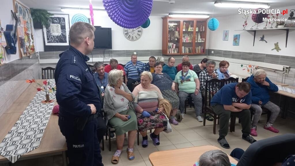 Mysłowicki policjant odwiedził Dom Pomocy Społecznej w Mysłowicach, gdzie przekazał zgromadzonym podopiecznym informacje na temat zasad bezpieczeństwa oraz ostrzegł o ciągłym występowaniu przestępstw na tzw. wnuczka, policjanta itp. Mundurowy przekazał również dane kontaktowe do dzielnicowych z KMP w Mysłowicach. Poruszono także tematykę związaną z przemocą w rodzinie oraz bezpieczeństwem w ruchu drogowym. Na koniec policjant odpowiedział na pytania zgromadzonych seniorów.