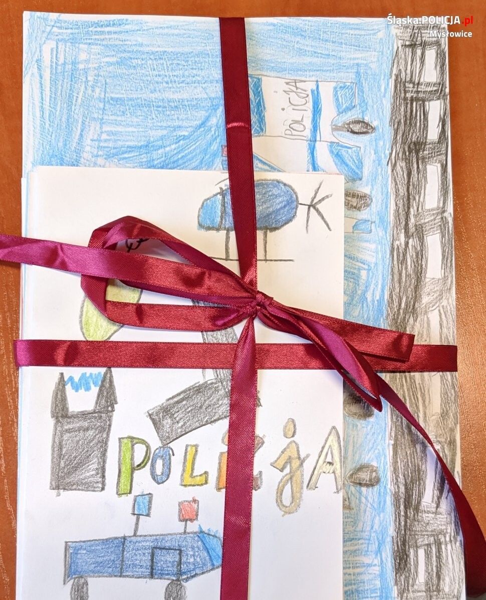 Policjanci bardzo dziękują dzieciom za pamięć i doceniają wysiłek włożony w przygotowanie karteczek