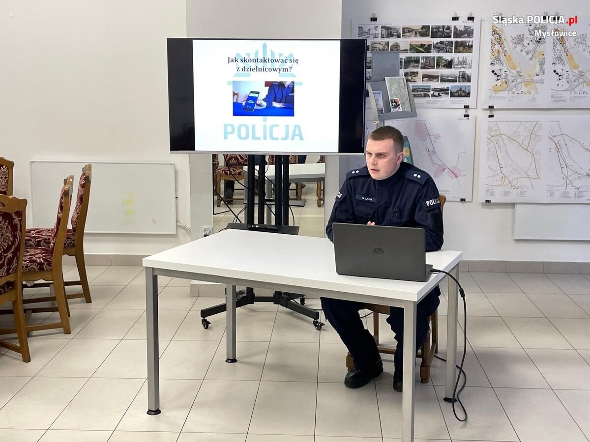 Jako drugi wystąpił sierż. szt. Paweł Rogóż z Wydziału dw. z Przestępczością Gospodarczą Mysłowickiej Komendy, który na co dzień zajmuje się problemem przestępstw w sieci. Jako kolejny głos zabrał sierż. Wojciech Rola- Psycholog z Komendy Wojewódzkiej Policji w Katowicach, który poruszył metody jakie wykorzystują przestępcy, by wzbudzić w nas strach o nasze oszczędności i uśpić naszą czujność.