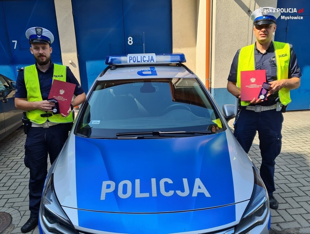 Wśród 40 odznaczonych policjantów z całej Polski znaleźli się młodszy aspirant Paweł Świdziński i starszy sierżant Łukasz Deszcz z Wydziału Ruchu Drogowego Komendy Miejskiej Policji w Mysłowicach. Mysłowiccy stróże prawa pod koniec marca tego roku uratowali z płonącego budynku starsze małżeństwo.
