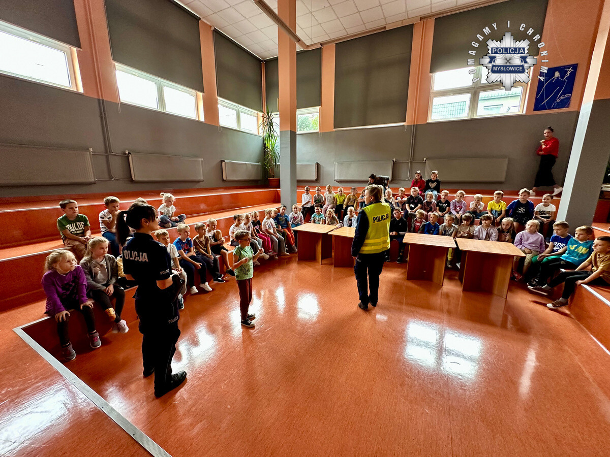 Chociaż powrót do szkoły już za nami, to zawsze jest okazja, by przypomnieć najmłodszym, jak powinni się zachowywać, by bezpiecznie do niej dotrzeć. Z tej okazji w Szkole Podstawowej numer 17 w Mysłowicach odbyło się w czwartek spotkanie policjantów z pierwszoklasistami. Policjantki zajmujące się profilaktyką rozmawiały z najmłodszymi podopiecznymi tej szkoły, przypominając im nabyte już w przedszkolu zasady bezpieczeństwa na przejściach dla pieszych, chodnikach czy placach zabaw. Mundurowe przestrzegały również przed kontaktami z nieznajomymi, zarówno w internecie jak i w świecie realnym. Tematem prelekcji były również numery alarmowe, oraz to, w jaki sposób i kiedy z nich korzystać. Na koniec stróże prawa odpowiedzieli na pytania zgromadzonych dzieci.