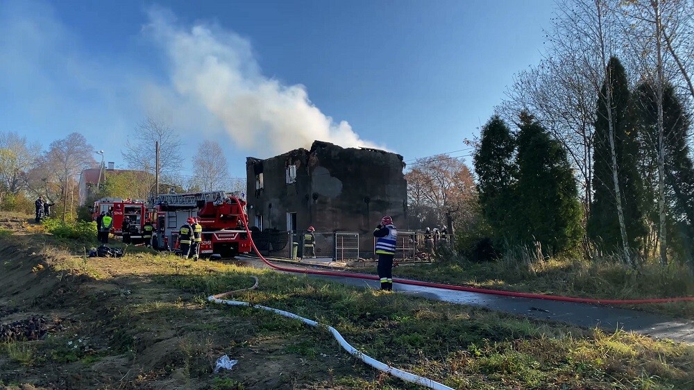 Budynek, w którym mieszka małżeństwo – 90-letni mężczyzna i 87-letnia kobieta – spalił się niemal całkowicie. Spłonęło pierwsze piętro i cały dach. Na miejscu był Powiatowy Inspektor Nadzoru Budowlanego, który ocenił straty. Na razie nie wiadomo, jak doszło do wybuchu pożaru. Przyczynę bada policja.