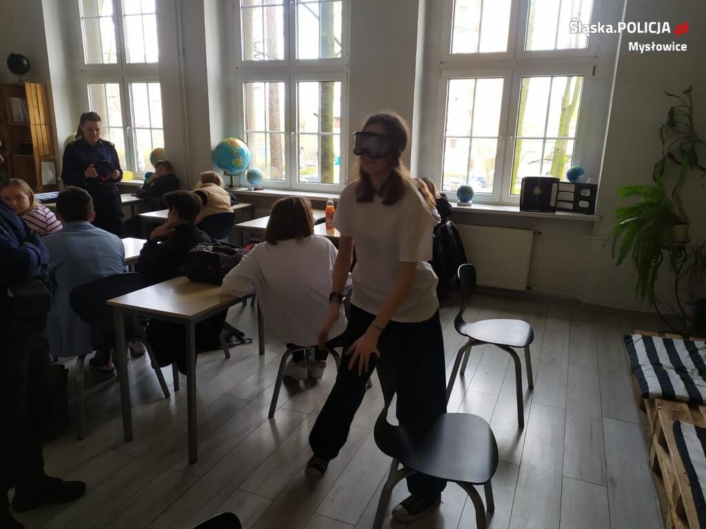 Przedwczoraj policjantka Wydziału Ruchu Drogowego wraz z dwiema funkcjonariuszkami Straży Miejskiej przeprowadziły prelekcję w 2 Liceum Ogólnokształcącym w Mysłowicach dotyczącą bezpieczeństwa na drodze a w szczególności na przejściu na pieszych.