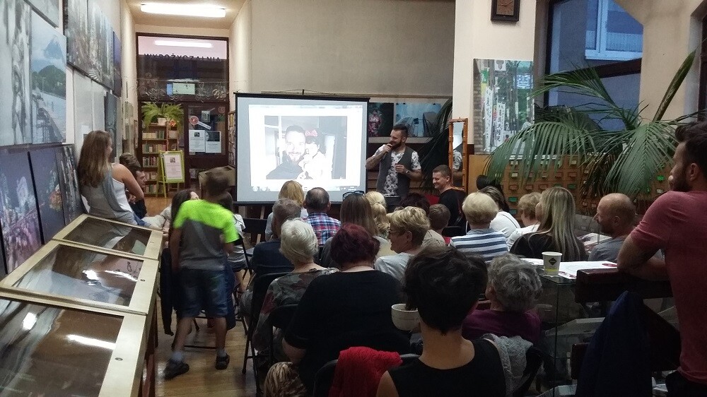 Nocni czytelnicy wysłuchali opowieści o kolorowej i zatłoczonej Japonii oraz codziennych zmaganiach mysłowickiego „samuraja” w dalekim kraju. Prelekcji towarzyszyła wystawa zdjęć, które można podziwiać w holu biblioteki do końca wakacji. Natomiast na zwariowaną podróż „dookoła świata” namawiał czytelników Mieczysław Bieniek - czyli Hajer, który po przejściu na emeryturę odnalazł nowy sposób na życie. Opowiedział o swoich przeżyciach ze światowych podróży, dokumentując relacje wspaniałymi zdjęciami. Zwolennik taniego podróżowania, swoje szalone przygody opowiadał śląską gwarą, nie szczędząc pikantnych momentów. Mieczysław Bieniek jest autorem pięciu książek. W każdej z nich opisuje wspaniały i nieznany świat oraz rozmaite i zaskakujące przygody, wynikające z szalonego podejścia do swoich wojaży. Niepowtarzalny nocny klimat i ciekawy temat podróży przyciągnął wielu wiernych słuchaczy. Najwytrwalsi nocni czytelnicy swoje biblioteczne podróże zakończyli przy ognisku, oczywiście elektrycznym, ale niewiele różniącym się od prawdziwego. Biesiadne i trochę zapomniane pieśni wszyscy wspólnie śpiewali przy akompaniamencie gitary. W czasie nocnych podróży nie zapomniano również o najmłodszych czytelnikach.