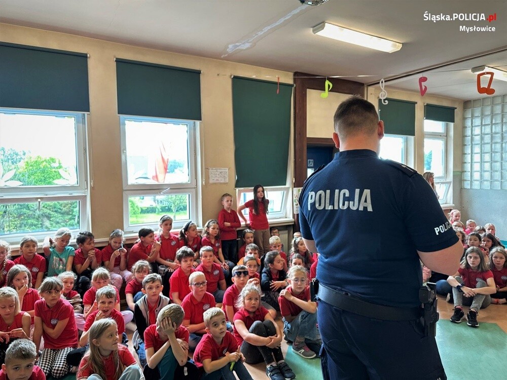 W ostatnich dniach profilaktyk z mysłowickiej komendy odwiedził podopiecznych Szkołę Podstawową nr 1 i 16 oraz Zespół Szkół Specjalnych. Policjant w trakcie spotkań z blisko 500 dziećmi poruszył tematykę akcji "Kręci mnie bezpieczeństwo nad wodą", przypominając o tym, jak należy się zachowywać w trakcie wakacyjnego wypoczynku zarówno nad wodą, jak i w górach czy w mieście. Mundurowy przypomniał również zasady bezpiecznego korzystania z sieci, zasady obowiązujące w ruchu drogowym, oraz jaką odpowiedzialność ponoszą uczniowie zgodnie z obowiązującymi przepisami prawa. Tradycyjnie, nie zabrakło również ciekawych pytań ze strony dzieci, na większość z nich policjant udzielił odpowiedzi.
