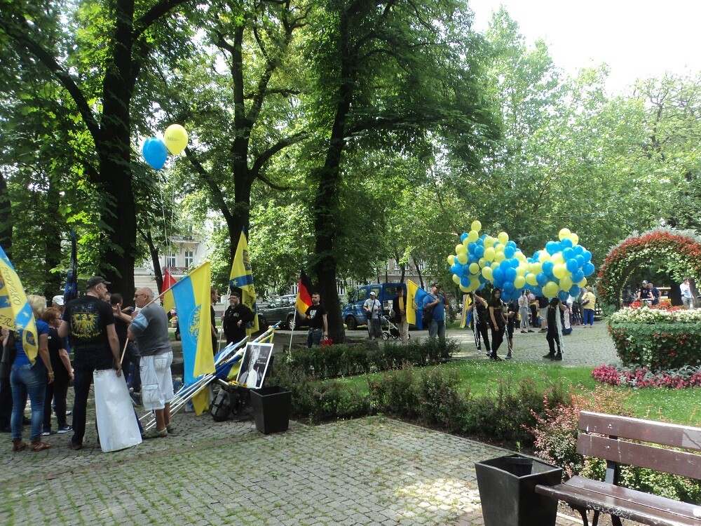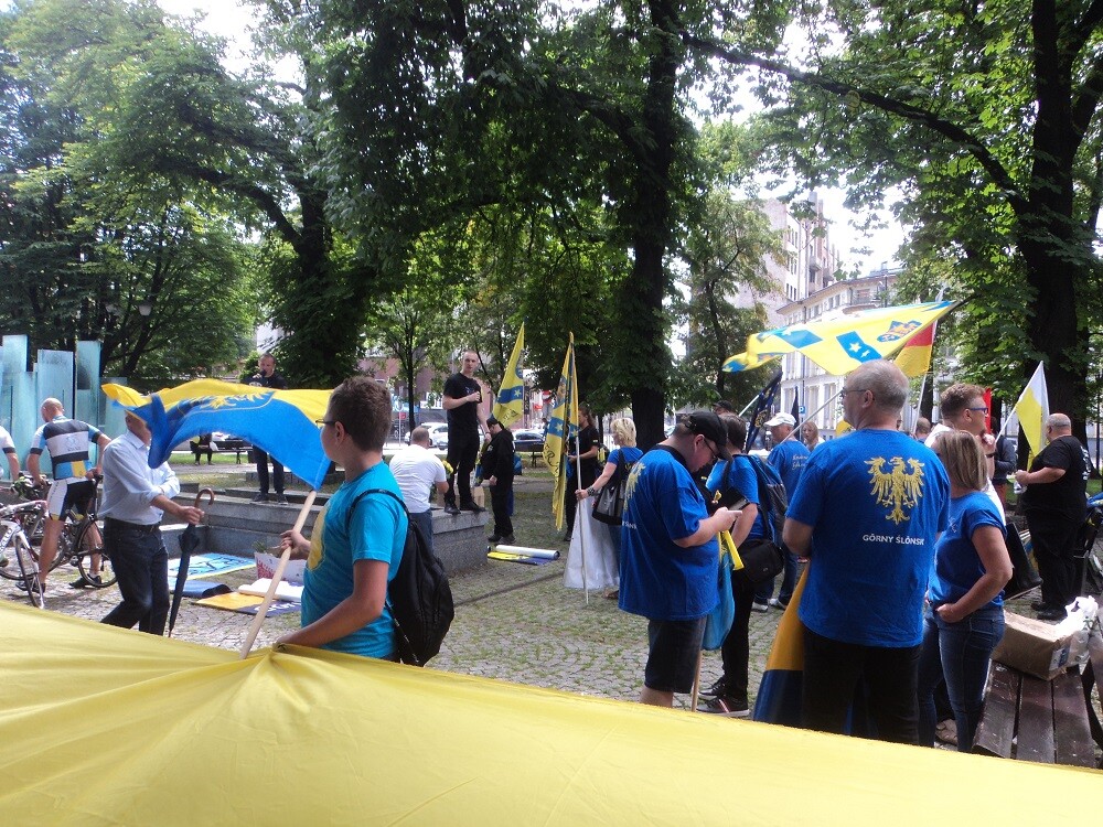 Na Placu Wolności, prowadzący marsz - Peter LANGER ze Ślōnskij Ferajny – przypomniał postać Dietera PRZEWDZINGA, burmistrza Zdzieszowic, zwolennika autonomii gospodarczej, który ponad cztery lata temu został zamordowany w niewyjaśnionych do dzisiaj okolicznościach. Zgromadzeni uczcili go minutą ciszy. W trakcie przemarszu skandowano hasła: „Autonomia to nie skrajność, autonomia to normalność” i „Autonomia rzecz wspaniała, bo Śląsk syty, Polska cała”, a także rozdawano dzieciom żółte i niebieskie balony, a paniom – róże w tych kolorach. Warto również zauważyć, że marsz wzbudzał ogromne zainteresowanie wśród zgromadzonych na katowickich ulicach.