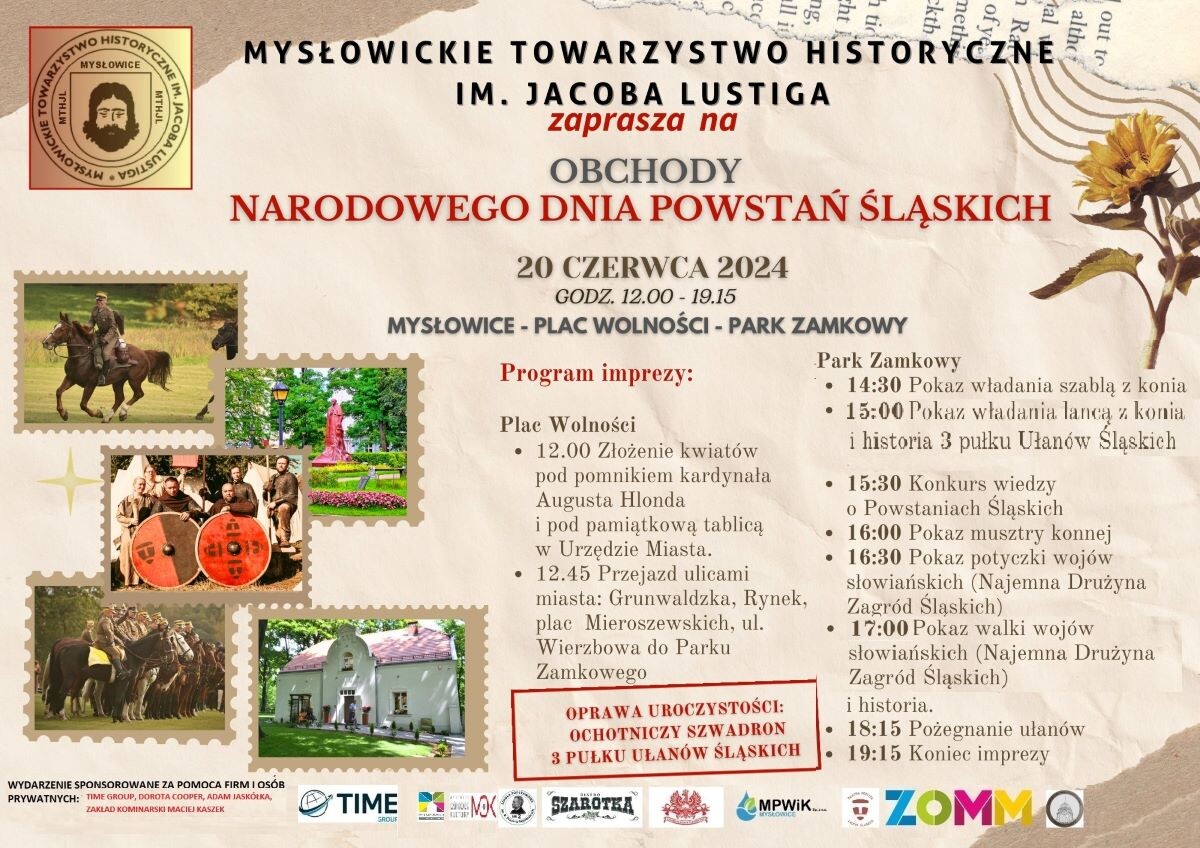 Urząd Miasta Mysłowice serdecznie zaprasza wszystkich mieszkańców oraz miłośników historii na uroczyste obchody Narodowego Dnia Powstań Śląskich, które odbędą się 20 czerwca. Wydarzenie zostanie zorganizowane przez Mysłowickie Towarzystwo Historyczne im. Jacoba Lustiga (MTHJL) i odbędzie się na Placu Wolności oraz w malowniczym Parku Zamkowym.