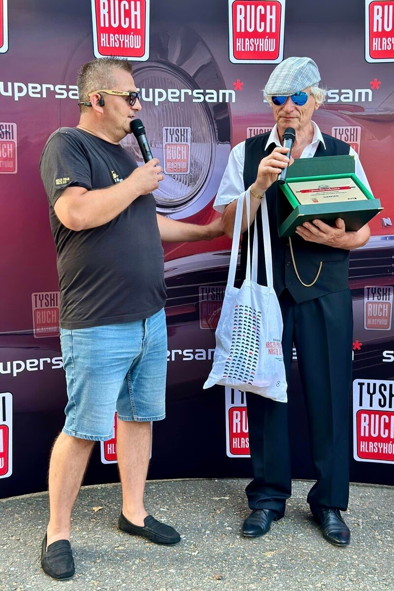 Pan Henryk Mirowski, dumny właściciel Mercedesa, otrzymał nagrodę za swój wyjątkowy pojazd. Wręczenie nagrody odbyło się w obecności fanów motoryzacji, Mariusza Skwarzca i Andrzeja Dombka, którzy również docenili piękno i wyjątkowość tego klasycznego auta.
