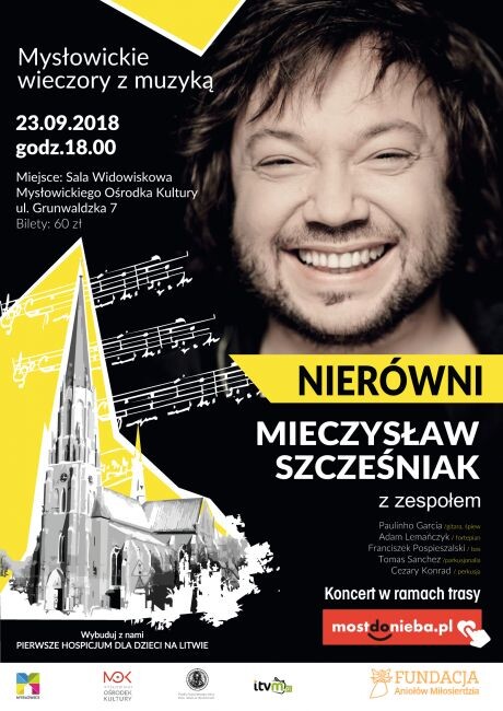 Projekt „Nierówni”, z którym artysta wystąpi w MOK-u prezentuje materiał z najnowszej płyty wokalisty, opartej na tekstach ks. Jana Twardowskiego oraz latynoskich aranżacjach. Na scenie oprócz Mietka Szcześniaka pojawi się pięciu wybitnych muzyków, m.in. basista Tomasz Pospieszalski oraz mający na swoim koncie nominację do nagrody Grammy wybitny gitarzysta Paulinho Garcia.