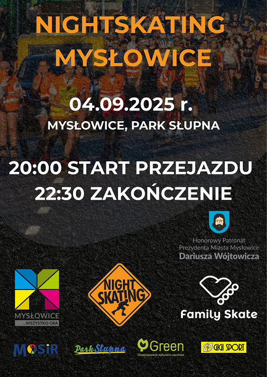 Prezydent Miasta Mysłowice oraz Stowarzyszenie Kulturalno-Sportowe „Green” zapraszają na kolejny przejazd rolkowy NIGHTSKATING MYSŁOWICE. Wydarzenie odbędzie się 4 września, a uczestnicy będą mieli okazję przejechać 16 kilometrów ulicami miasta.