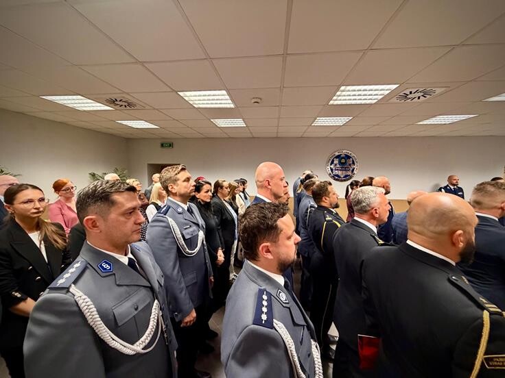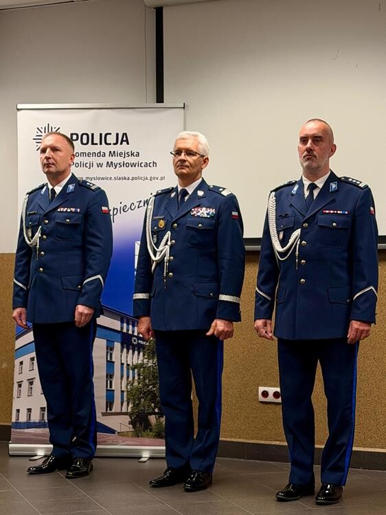 Głos zabrał również Prezydent Miasta Mysłowice, Dariusz Wójtowicz, który dziękował mł. insp. Bąkowi za wieloletnią współpracę, podkreślając jego wkład w poprawę bezpieczeństwa w mieście. Prezydent gratulował również nowemu Komendantowi, insp. Dariuszowi Fuksowi, i wyraził gotowość do kontynuowania współpracy z Policją w Mysłowicach.