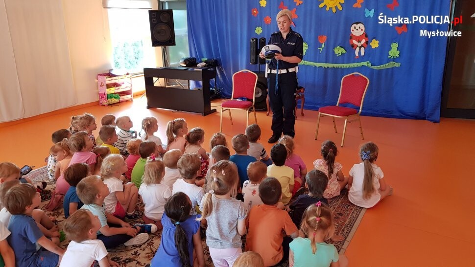 Jak bezpiecznie przejść przez jezdnię, jak uchronić się przed atakiem czworonoga, jak postępować w kontaktach z osobami obcymi? - to tematy, jakie poruszono w trakcie spotkania w Gumisiowym Przedszkolu na Krasowach. Przedszkolaki wysłuchały policyjnych porad dotyczących bezpieczeństwa w związku ze zbliżającymi się wakacjami. W trakcie spotkania asp. szt. Jolanta Łuczak i sierż. Damian Sokołowski przypomnieli także dzieciom o podstawowych zasadach bezpieczeństwa w różnych sytuacjach oraz ostrzegali przed potencjalnymi zagrożeniami.