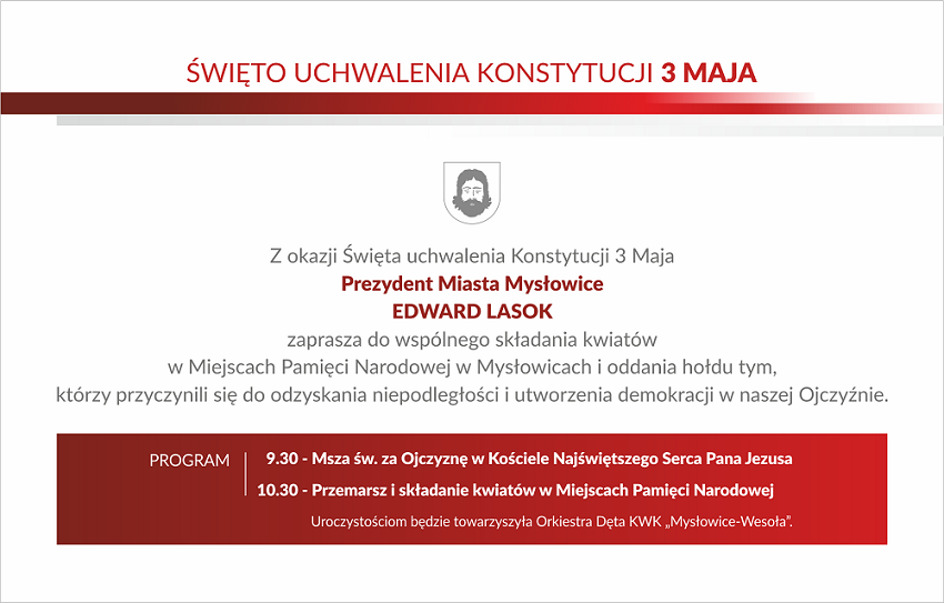 Prezydent Miasta Mysłowice Edward Lasok zaprasza na uroczyść.