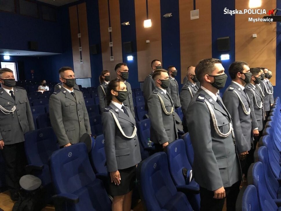 Święto Policji to przede wszystkim okazja do mianowania funkcjonariuszy na wyższe stopnie policyjne za ich codzienną, sumienną i ciężką służbę. W tym roku nowe dystynkcje otrzymało 49 mysłowickich policjantów. Akty mianowania na wyższe stopnie służbowe wręczał Komendant Miejski Policji w Mysłowicach podinsp. Dariusz Koniak w asyście swojego zastępcy mł. insp. Romana Fitrzyka. Dodatkowo 5 policjantów zostało wyróżnionych nagrodą pieniężną przez Prezydenta Miasta Mysłowice Dariusza Wójtowicza za szczególne zaangażowanie w służbę.