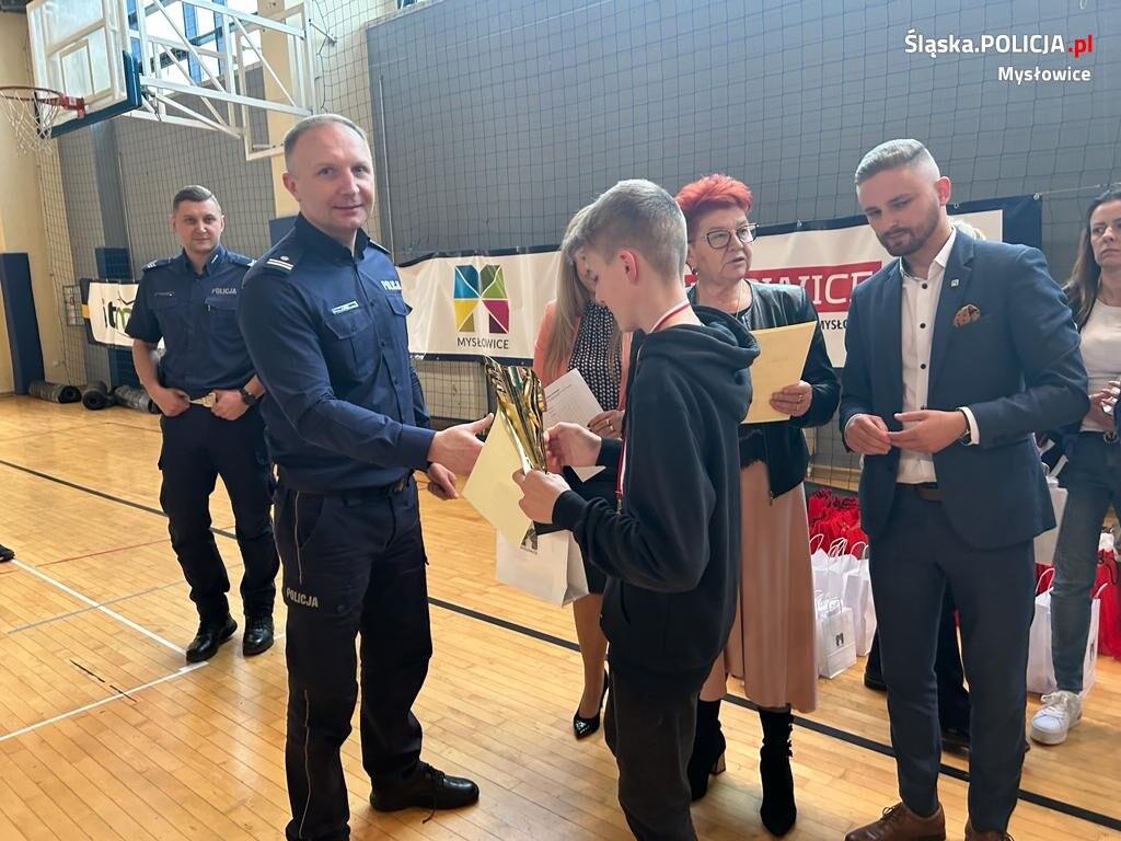Komendant Miejski Policji w Mysłowicach z władzami miasta Mysłowice osobiście wręczyli nagrody dla zwycięzców.
