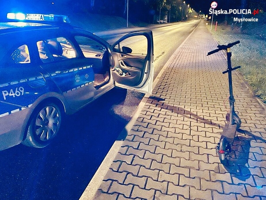 Policjanci z mysłowickiej drogówki jak co noc patrolowali ulice miasta, gdy na ulicy Katowickiej ich uwagę zwrócił mężczyzna, jadący po jezdni elektryczną hulajnogą. Stróże prawa skontrolowali trzeźwość mężczyzny. Jak się okazało, 35-latek z Mysłowic miał w organizmie 1,6 promila. Spotkanie z drogówką skończyło się dla 35-latka mandatami karnymi w wysokości 2800 złotych.
