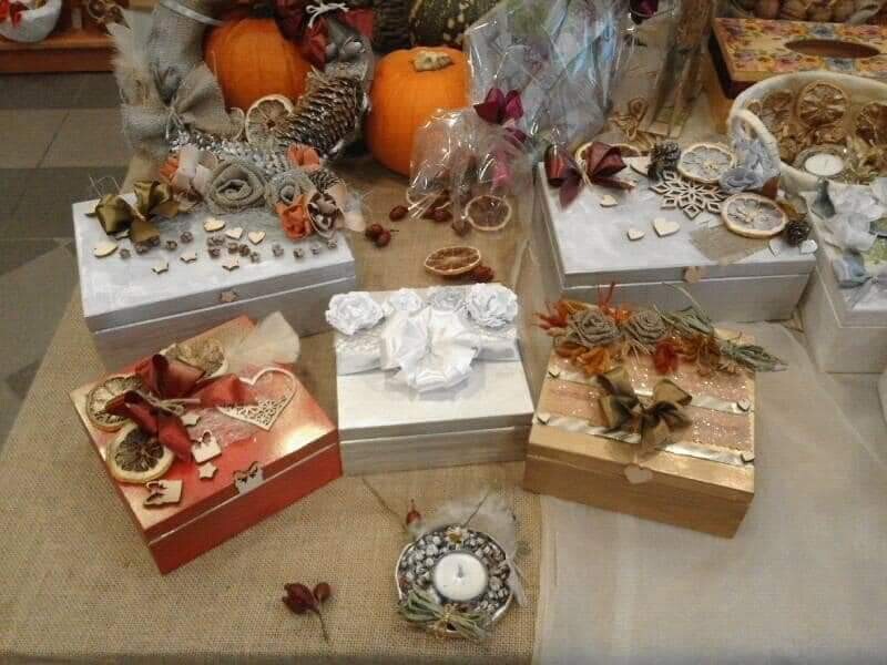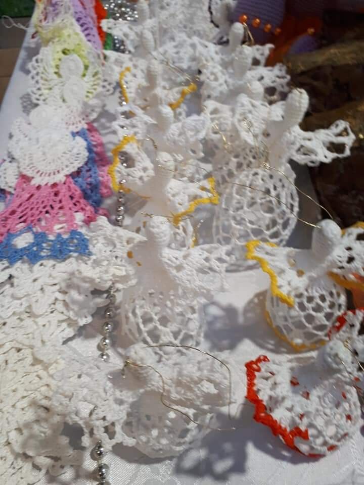 Ponadto można było nabyć jej prace, idealne na prezent świąteczny m.in.: ręcznie lepioną i malowaną ceramikę, ozdoby świąteczne na choinkę i szopki, biżuterię ceramiczną i wiele innych. Pani Dorota, mieszkanka dzielnicy Piasek proponowała również własnoręcznie wykonane ozdoby świąteczne techniką szydełkową oraz bombki i kartki świąteczne cieszące się dużym powodzeniem odwiedzających Auchan. Na jarmarku gościła również pani Bożena - absolwentka Wydziału Sztuki, Akademii im. Jana Długosza w Częstochowie, prowadząca własną pracownią artystyczną. Pracownia artystyczna Tulinka proponowała wianki, stroiki, lampiony, makramy, ręcznie zdobione kartki okolicznościowe i drewniane szkatułki, pudełka oraz obrazy