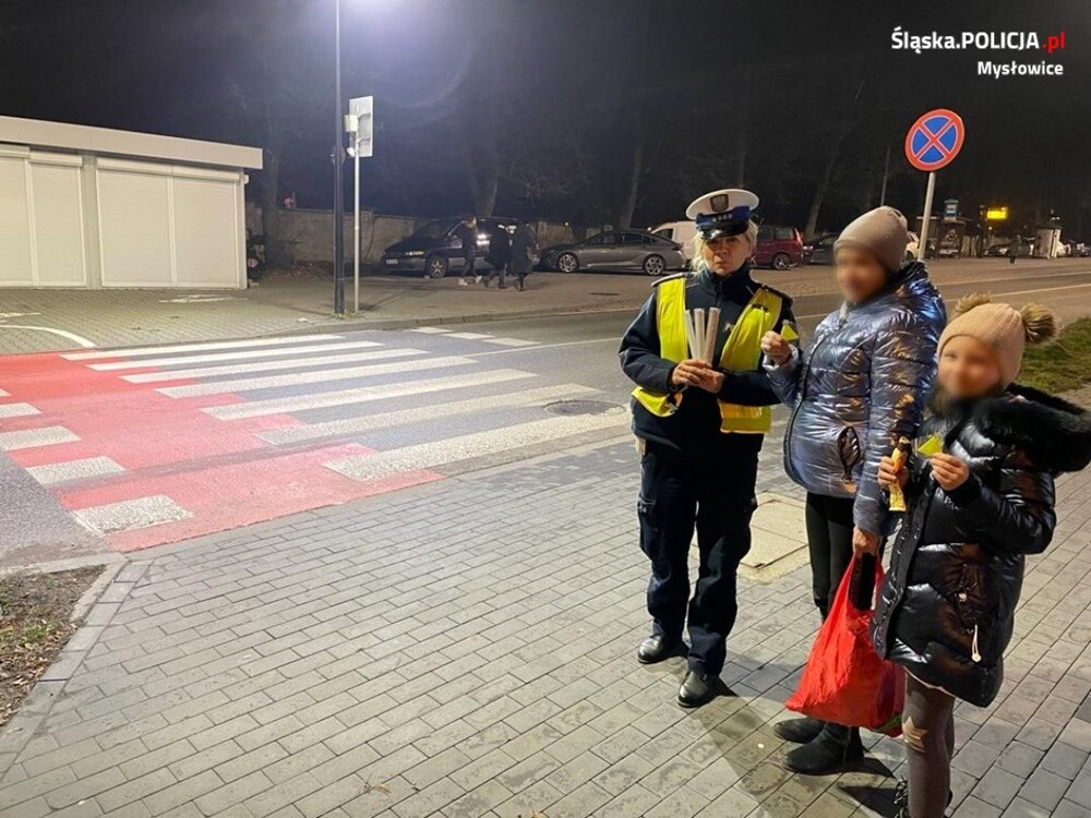 Mundurowi prowadzili również działania profilaktyczne skierowane do pieszych, rozdając odblaskowe torby oraz opaski, by poprawić ich bezpieczeństwo po zmroku.