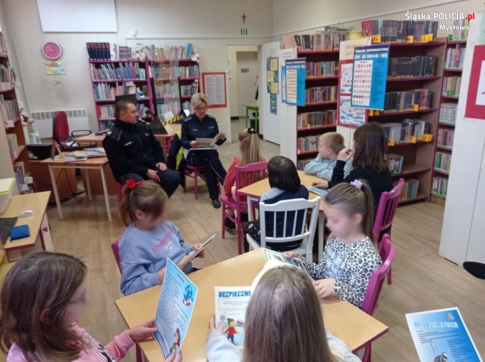 Mundurowi z mysłowickiej komendy spotkali się z uczniami Zespołu Szkół Specjalnych oraz odwiedzili młodych czytelników w Miejskiej Bibliotece Publicznej Filia nr 5 w Brzęczkowicach.