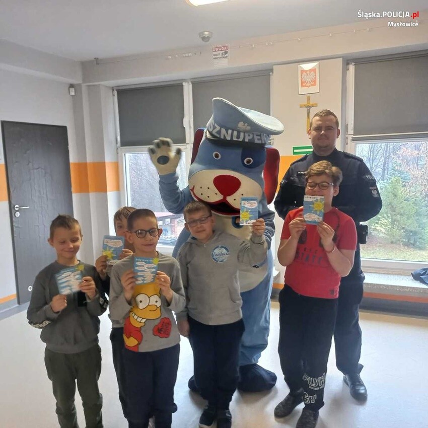 Mysłowiccy policjanci wraz ze Sznupkiem- maskotką Śląskiej Policji spotkali się z uczniami Zespołu Szkół Specjalnych oraz odwiedzili młodych czytelników w Miejskiej Bibliotece Publiczne Filia nr 5 w Brzęczkowicach. Wizyta była okazją do porozmawiania na temat podstawowych zasad bezpieczeństwa w trakcie zimowego wypoczynku, w ruchu drogowym, znajomości numerów alarmowych, a także kontaktów z nieznajomymi. Mundurowi przekazali ulotki z zasadami bezpieczeństwa na stoku oraz zachęcali do wzięcia udziałuw konkursie plastyczno-filmowym "Śnieżny Dekalog".