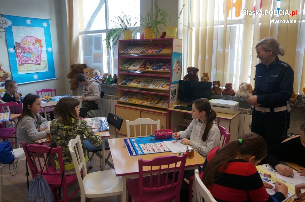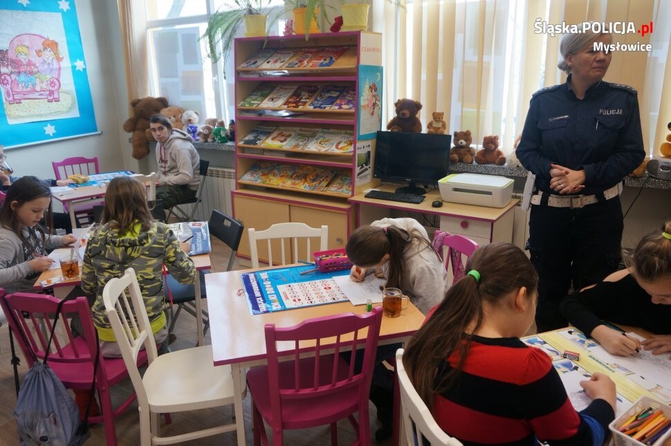 Spotkania stróżów prawa z dziećmi i młodzieżą już na stałe wpisały się w nasz kalendarz. Policjanci z Komendy Miejskiej Policji w Mysłowicach przeprowadził tym razem prelekcje w budynku Biblioteki Miejskiej przy ul. Ziętka 23 w Mysłowicach. Była to świetna okazja do propagowania zagadnień dotyczących bezpieczeństwa w czasie ferii zimowych.