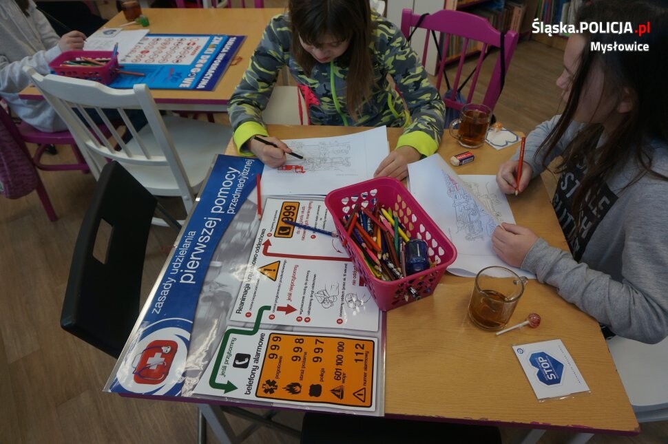 Okres ferii zimowych policjanci z Mysłowic wykorzystują na liczne spotkania, kampanie czy prelekcje, w czasie których mówią o tym, jak bezpiecznie wypoczywać w górach, na podwórku czy w domu. Tym razem w Bibliotece Miejskiej przy ul. Ziętka 23 w Mysłowicach, policjanci rozmawiali z dziećmi o zagrożeniach jakie mogą je spotkać podczas zimowego wypoczynku, o zasadach jakich należy przestrzegać, aby nie dopuścić do nieszczęśliwych zdarzeń ale także jak reagować gdy do nieszczęścia jednak dojdzie.