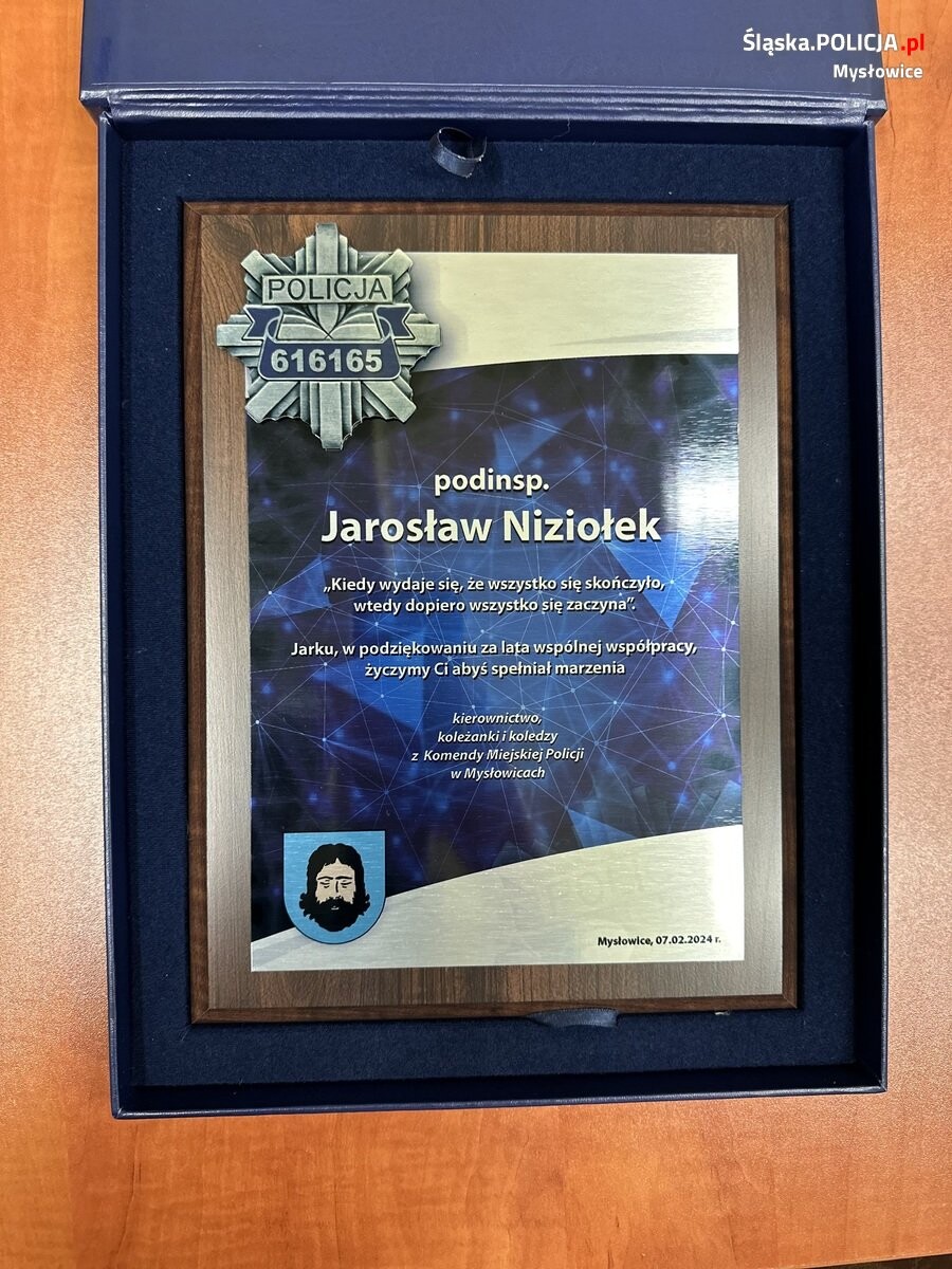 Koledzy ze służby odchodzącego policjanta dziękują za wspólną służbę i życzą, dużo zdrowia, pomyślności, wielu sukcesów w życiu osobistym oraz spełnienia wszystkich planów i zamierzeń. Aby czas emerytury pozwolił na odkrycie nowych pasji i nieznanych dotąd uroków życia pełnego optymizmu, dystansu i zadowolenia.