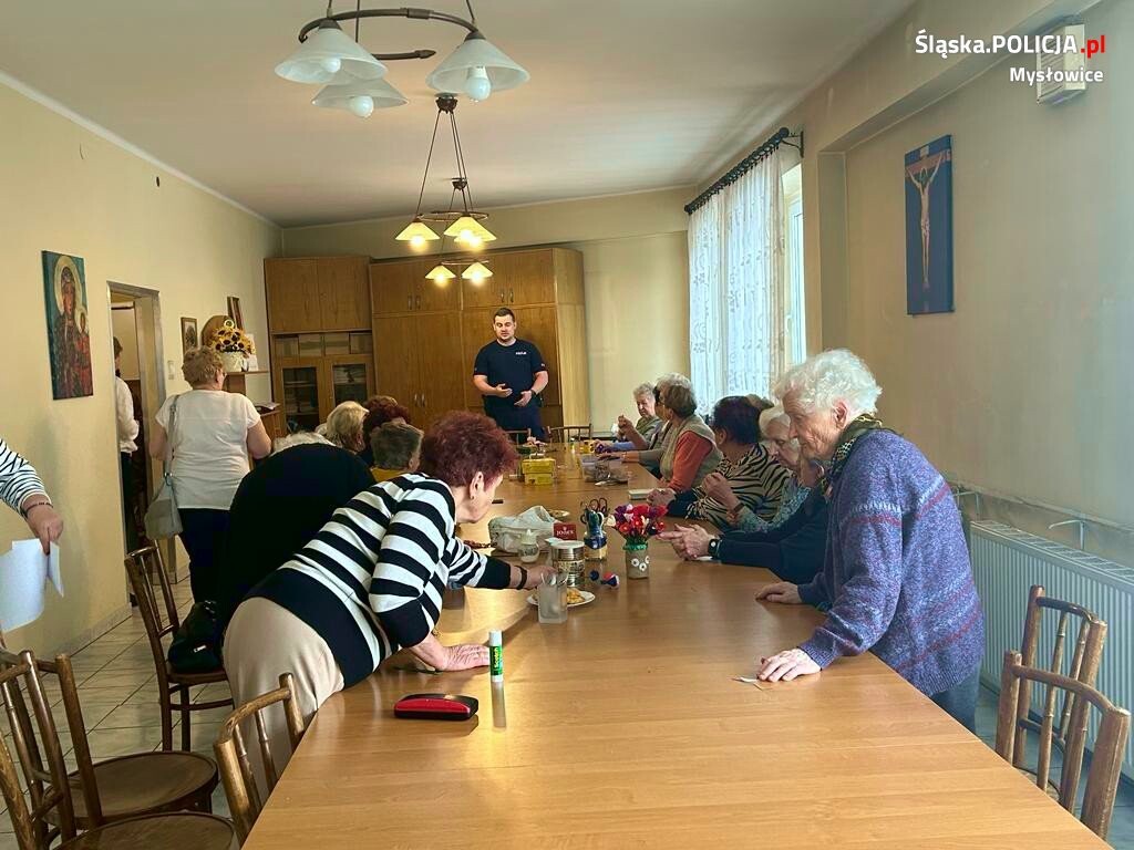 W Klubie Seniora, gdzie przekazali zgromadzonym seniorom informacje na temat zasad bezpieczeństwa, ostrzegali o ciągłym występowaniu przestępstw na tzw. wnuczka, policjanta itp. Stróże prawa omówili również założenia akcji "Nie reagujesz, akceptujesz!" zachęcając seniorów, by informowali służby o zdarzeniach, których są świadkami. Mundurowi przekazali również dane kontaktowe do dzielnicowych z KMP w Mysłowicach. Poruszono również tematykę związaną z bezpieczeństwem pieszych. Na koniec policjanci odpowiedzieli na pytania zgromadzonych seniorów.