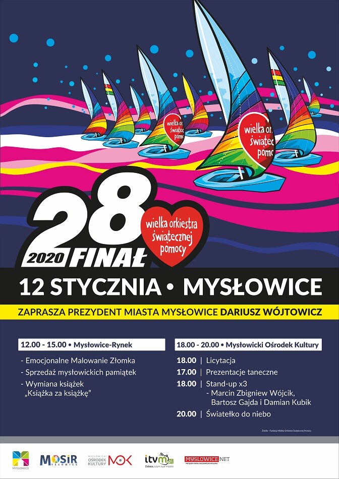 Start punktualnie o godzinie 12:00 na Mysłowickim Rynku! O godzinie 17:00 finał przeniesie się do Sali Widowiskowej Mysłowickiego Ośrodka Kultury. Wydarzenie finansowane jest z prywatnych środków prezydenta Dariusza Wójtowicza.
