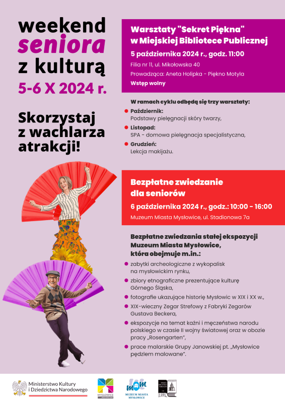Wszyscy mysłowiccy seniorzy są zaproszeni do udziału w tegorocznej edycji mającej na celu walkę z wykluczeniem poprzez aktywne włączenie osób starszych w życie kulturalne. To okazja do skorzystania z oferty instytucji kultury w okolicy.