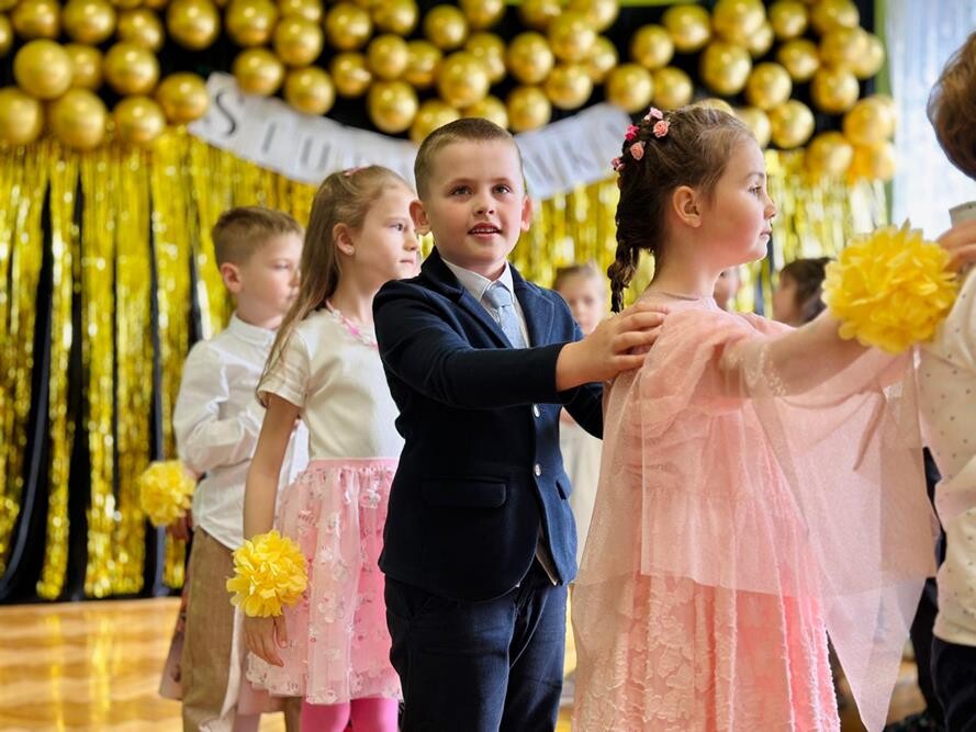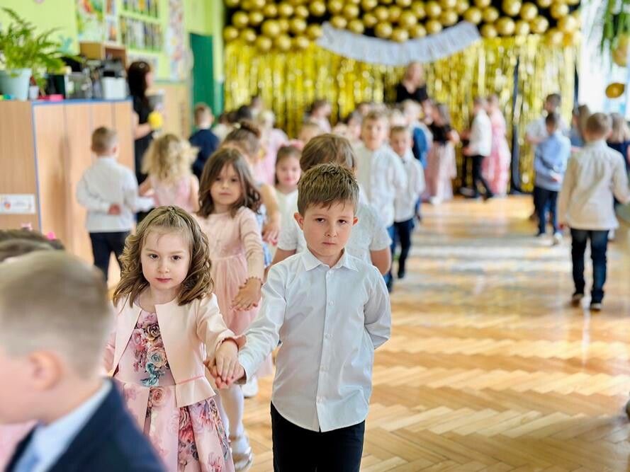 Studniówka, mimo młodego wieku uczestników, miała elegancką oprawę. Przedszkolaki, ubrani w stroje galowe, zatańczyli poloneza, a cała uroczystość wypełniona była śmiechem i uśmiechami. Wspólna zabawa była nie tylko okazją do świętowania, ale także momentem, który z pewnością na długo zapadnie w pamięci zarówno dzieci, jak i nauczycieli.