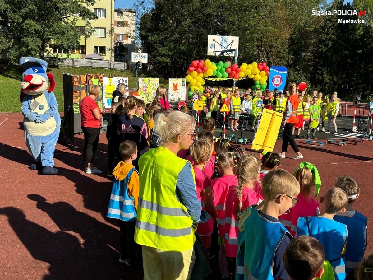 Uczniowie aktywnie uczestniczyli w wydarzeniu, przygotowując kolorowe plakaty oraz występy artystyczne związane z tematyką bezpieczeństwa. O dobrą zabawę dbał niezastąpiony Sznupek, który nie tylko pozował do zdjęć, ale również przybijał "piątki" z dziećmi.
